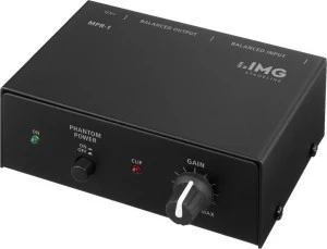 1-kanałowy przedwzmacniacz mikrofonowy z zasilaniem phantom. · Wejście mikrofonowe XLR (sym.) lub 6.3mm (niesym.) · Regulowane wzmocnienie, do max 50dB · Diodowy wskaźnik przesterowania · Zasilanie phantom 30V, wyłączane Typ urządzenia przedwzmacniacz mikrofonowy Pasmo przenoszenia 10-30 000 Hz Sygnał wejściowy 3.5mV (XLR, sym.) 16mV (6.3mm sym.) Impedancja wejściowa 10 kΩ Sygnał wyjściowy 1 V Wzmocnienie 50dB (sym.) 44dB (niesym.) Stosunek S/N 58 dB THD 0.1 % Dopuszcz. temp. otoczenia 0-40 °C Zasilanie z doł. zasilacza Wymiary 113x92x40mm Waga 345 g Złącza wejściowe 1 x XLR, 1 x gniazdo 6.3mm Złącza wyjściowe 1 x XLR, 1 x 6.3mm Waga netto 0.53 kg