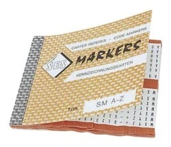 zawierają 10 stron wyciętych pasków z taśmy winylowej. Na każdym pasku drukowane są od 6 do 7