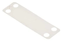 Płytki znakujące. Białe nylonowe płyty znakujące w sześciu różnych rozmiarach. Płytki te mają unikalną konstrukcję z okrągłymi otworami zamiast szczelin, które umożliwiają montaż płyt pionowo lub poziomo, tak aby mogły być stosowane jako znaczniki, znaczniki lub owinięte tabliczki identyfikacyjne. Mogą być one oznaczone nylonowymi pismami oznaczającymi, ostemplowanymi na gorąco lub w maszynach do znakowania.,mogą być stosowane opaski kablowe o szerokości ; 4.8MM - patrz numery seryjne RS 178-484 i 178-478