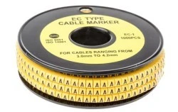 Znaczniki kablowe RS EC-1. Te elementy ślizgowe na żółtym znaczniku na przewodzie PVC są wykonane z najcieńszego miękkiego, Durable PCW, odpornego na erozję oleju, smaru i innych materiałów. Znaczniki kablowe typu EC-1 posiadają wysokiej jakości elastyczne wnętrze, dzięki czemu można je dopasować do długości od 2,0 do 3,20 mm. Te slajdy na znacznikach kabla PVC mają pogrubioną czarną barwę na żółtej części ciała. Wykonane z najdrobniejszego PVC Odporne na działanie oleju i smaru Temperatura maksymalna 85°C. Dostarczane w postaci rolki
