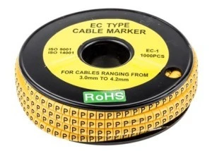Znaczniki kablowe RS EC-1. Te elementy ślizgowe na żółtym znaczniku na przewodzie PVC są wykonane z najcieńszego miękkiego, Durable PCW, odpornego na erozję oleju, smaru i innych materiałów. Znaczniki kablowe typu EC-1 posiadają wysokiej jakości elastyczne wnętrze, dzięki czemu można je dopasować do długości od 2,0 do 3,20 mm. Te slajdy na znacznikach kabla PVC mają pogrubioną czarną barwę na żółtej części ciała. Wykonane z najdrobniejszego PVC Odporne na działanie oleju i smaru Temperatura maksymalna 85°C. Dostarczane w postaci rolki