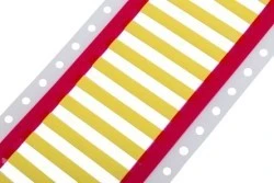 Osłony identyfikacyjne termokurczliwe RS. Kurczenie się ciepła tulei identyfikacyjnych wykonane z wysokiej jakości poliolefiny ognioodpornej o doskonałych właściwościach. Tuleje znakujące są wstępnie przecięte i ułożone w postaci drabiny. Tuleje identyfikacyjne są niezwykle elastyczne dzięki cienkiej ścianie, co pozwala na ich stosowanie w drukarkach, co pozwala na zmniejszenie liczby błędów, czasu instalacji i kosztów. Charakterystyka i zalety Współczynnik załamania wynoszący 3:1 Dostępny w kolorze żółtym lub białym, w różnych rozmiarach średnicy Gotowy do pracy z drukarkami termotransferowymi Elastyczność Materiał trudnopalny Dobra odporność na ścieranie i substancje chemiczne Niezawodne właściwości fizyczne, chemiczne i elektryczne Pre-cięta tuba z linią kropkowaną umożliwia łatwe odrywanie przewodu