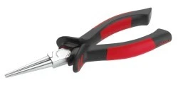 Szczypce płaskie z długimi szczękami DIN ISO 5745, połączenie inkrustowane, okrągłe szczęki, długość szczęk, drobno ząbkowane powierzchnie chwytne