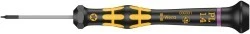 Rękojeść: Kraftform Micro z zabezpieczeniem przed staczaniem się narzędzia i obrotowym kołpakiem, wielokomponentowa. System wyszukiwania narzędzi Wera Take it easy: z oznaczeniem kolorystycznym profilu (fioletowy= Pentalobe) i rozmiaru.