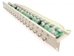 16-kanałowy separator Video z zabezpieczeniem przeciwprzepięciowym, transformatorem na skrętkę i dystrybucją zasilania