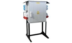 Stojak jest spawany z kątowników i opasa tył rozdzielnicy. Takie rozwiązanie zabezpiecza obudowę i pozwala na bezpieczne transportowanie rozdzielnicy w pozycji poziomej.