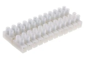 VDE. Terminal łączeniowy poliamidu (wtyczka pozioma). Bloki terminal z poliamidem wtykowym (PA66) z poziomym zorientowaniem korka 2 x 12-stykowe Półsztywne Materiał trudnopalny Wysoka temperatura (105°C) Naturalny kolor Niklowane mosiężne wkładki terminal Ocynkowane śruby stalowe Wszystkie śruby są typu niegubnego i mają zabezpieczone gniazda, aby ułatwić podłączenie Możliwość wyboru pojemności przekroju żył: ; 865-9821 865-9821 2,5 mm² ; 865-9830 865-9830 4 mm² ; 865-9833 865-9833 6 mm²