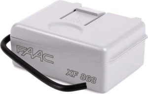 2-kanałowy moduł radiowy Faac XF 868 do zastosowania wyłącznie z nowymi centralami Faac posiadającymi wbudowany decoder OMNIDEC: E045, E145, E024S, E124, 391E, E720 (C720), E721 (C721), E600 (D600), E700 (D700HS), E1000 (D1000).