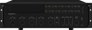 20-strefowy wzmacniacz miksujący PA, mono · 1 x 600WRMS · 20 stref, sterowanych osobno · 3 wejścia mikr./linia, gniazda Combo · 2 wejścia liniowe stereo, gniazda RCA · Gong 2 lub 4-tonowy, dźwięk wyjący i ciągły, automatyczne wyciszanie · 2-punktowy korektor barwy, regulator głośności, diodowy wskaźnik poziomu sygnału/szczytu · Sterowany temperaturowo wentylator · Możliwość zamontowania różnych modułów audio · Zasilanie phantom 15V dla mikrofonów elektretowych · Możliwość podłączenia max 32 mikrofonów strefowych PA-2400RC · Możliwość podłączenia max 3 mikrofonów push-to-talk PA-4300PTT · Automatyczne komunikaty alarmowe z modułu PA-1120DMT (dostępny jako wyposaż. dodatk.) · Zasilanie sieciowe lub awaryjne 24V · Zdejmowany uchwyty montażowe Moc szczytowa (peak) 600 W Moc znamionowa RMS 600 W Moc znamionowa RMS przy 4Ω 600 W Moc znamionowa RMS przy 100V 600 W Kanały wejściowe 5 Strefy 20 Wejścia 2.5 mV/5 kΩ, 0.3 V/5 kΩ (mic/line 1-3), 0.3 V/15 kΩ (line 4-5), 0.775 V/100 kΩ (przedwzmacniacz) Pasmo przenoszenia 55-16 000 Hz Korektor niskie ±10 dB/100 Hz Korektor wysokie ±10 dB/10 kHz Stosunek S/N > 70 dB (mic), > 80 dB (line) THD