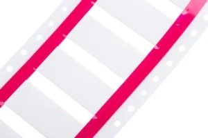 Osłony identyfikacyjne termokurczliwe RS. Kurczenie się ciepła tulei identyfikacyjnych wykonane z wysokiej jakości poliolefiny ognioodpornej o doskonałych właściwościach. Tuleje znakujące są wstępnie przecięte i ułożone w postaci drabiny. Tuleje identyfikacyjne są niezwykle elastyczne dzięki cienkiej ścianie, co pozwala na ich stosowanie w drukarkach, co pozwala na zmniejszenie liczby błędów, czasu instalacji i kosztów. Charakterystyka i zalety Współczynnik załamania wynoszący 3:1 Dostępny w kolorze żółtym lub białym, w różnych rozmiarach średnicy Gotowy do pracy z drukarkami termotransferowymi Elastyczność Materiał trudnopalny Dobra odporność na ścieranie i substancje chemiczne Niezawodne właściwości fizyczne, chemiczne i elektryczne Pre-cięta tuba z linią kropkowaną umożliwia łatwe odrywanie przewodu