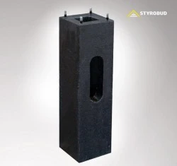 Fundament betonowy produkowany z betonu C30/37 wg normy EN 206, kosze zbrojeniowe wykonane ze stali zbrojeniowej, końce śrubowe ocynkowane. Wyposażone w elementy śrubowe (podkładki, nakrętki), plastikowe osłony (kapturki). W fundamencie są wykonane otwory boczne oraz pionowe służące do wprowadzania kabli zasilających. Zabezpieczone atestowaną powłoką impregnującą nakładaną w sposób natryskowy.