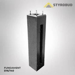 Fundament betonowy produkowany z betonu C30/37 wg normy EN 206, kosze zbrojeniowe wykonane ze stali zbrojeniowej, końce śrubowe ocynkowane. Wyposażone w elementy śrubowe (podkładki, nakrętki), plastikowe osłony (kapturki). W fundamencie są wykonane otwory boczne oraz pionowe służące do wprowadzania kabli zasilających. Zabezpieczone atestowaną powłoką impregnującą nakładaną w sposób natryskowy.