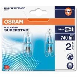 Komplet 2x Żarówka, Kapsułka Halogenowa z serii Halopin renomowanej i uznanej w branży oświetleniowej firmy OSRAM z trzonkiem G9 i mocy 50W. Kapsułka emituje ciepłą barwę światła o temperaturze barwowej 2800K. Dzięki niezwykle małym wymiarom pozwala na stworzenie niesamowitych aranżacji oświetleniowych. Żarówka doskonale sprawdzi się w każdym sklepie, hotelu czy restauracji jako oświetlenie zadaniowe lub dekoracyjne i może być montowana we wszystkich tradycyjnych oprawach, lampkach biurowych, które wyposażone są w trzonek G9. Wymiana źródła światła jest prosta i nie sprawia żadnych problemów dzięki systemowi trzonka wtykowego. Żarówka nie zawiera rtęci i nie wymaga transformatora.