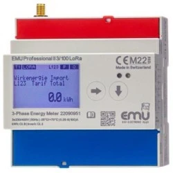 EMU Professional II 3/100 LoRa ext.Ant jest 3-fazowym licznikiem energii z homologacją MID i interfejsem radiowym LoRa, posiada wewnętrzną antenę LoRa, jak również zewnętrzne złącze antenowe (gniazdo SMA). Przełączanie pomiędzy anteną wewnętrzną a zewnętrzną odbywa się na wyświetlaczu licznika energii. Antena zewnętrzna nie wchodzi w zakres dostawy. Interfejs LoRa 3-fazowego licznika energii EMU Professional II LoRa oparty jest na standardzie radiowym LoRa. Funkcje w skrócie Licznik dwukierunkowy mierzy energie pobieraną i oddawaną do sieci Pasmo częstotliwości EU 863-870MHz Typ: Urządzenie klasy C Komunikacja dwukierunkowa. Interfejs LoRa jest gotowy do odbioru w każdej chwili (klasa C). Wewnętrzna antena LoRa ma siłę sygnału 14dbm. Pomiar bezpośredni do 100 A MID B+D, do celów rozliczeniowych Wyświetlacz LCD o wymiarach 38x28 mm Certyfikacja dla fotowoltaiki zgodnie z CLC/TR 50579:2012 Technologia Blockchain dla najwyższego bezpieczeństwa IoT Rozszerzony zakres temperatur: od -25°C do +70°C Możliwość odtworzenia wartości pomiarowych Moc czynna (kw) Moc bierna (kvar) Moc pozorna (kVA) Prąd (A) Zużycie energii czynnej (kWh) i dostawa (kWh) Energia bierna pobrana (kvarh) i dostarczona (kvarh) Częstotliwość (Hz) Liczba awarii napięcia Konfiguracja przekładnika prądowego Konfiguracja Każdy licznik energii jest dostarczany z fabryki w następującej konfiguracji: JoinMode: OTAA DevEUI (zaczyna się od 102CEF) Appkey AppEUI (10 2C EF 00 00 00) DevEUI i AppKey można odczytać na wyświetlaczu, AppEUI to zawsze 10 2C EF 00 00 00 00. S0 Wyjście impulsowe (Tranzystorowe) Licznik energii z obsługą LoRa - EMU Professional II posiada konfigurowalne wyjście impulsowe S0. Aktywny zakup energii lub aktywna dostawa energii Zakup energii reaktywnej lub dostawa energii reaktywnej Konfiguracja fabryczna Połączenie bezpośrednie: 1'000 impulsów/kWh, 40 ms