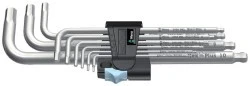 9x 3950 PKL Klucz trzpieniowy ze stali nierdzewnej z końcówka kulistą, metryczny: 1.5x90 mm, 2x101 mm, 2.5x112 mm, 3x123 mm, 4x137 mm, 5x154 mm, 6x172 mm, 8x195 mm, 10x224 mm