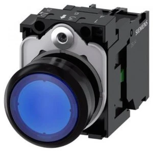 3SU1102‑0AB50‑1BA0 Illuminated pushbutton, 22 mm, round, plastic, blue, pushbutton, flat, momentary contact type, with holder, 1