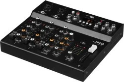 4-kanałowy mikser audio z wbudowanym urządzeniem efektowym DSP, odtwarzaczem MP3 oraz odbiornikiem Bluetooth. · Wbudowany interfejs USB audio (wykrywany jako zewnętrzna karta dźwiękowa) · Port USB full-duplex (równoczesne nagrywanie i odtwarzanie) · 2 kanały wejściowe mono, z regulacją wzmocnienia, 2-punktowym korektorem i regulatorem panoramy · 1 kanał wejściowy stereo, z 2-punktowym korektorem i regulatorem balansu · Odtwarzacz MP3 z interfejsem USB oraz odbiornikiem Bluetooth · 16 regulowanych efektów delay · Regulowane wyjście FX send oraz Aux return · Zasilanie phantom +48V, wyłączane · Regulowane wyjście słuchawkowe · Diodowy wskaźnik poziomu stereo · Zasilanie przez port USB lub dołączony zasilacz Kanały wejściowe 4 Ilość wejść mix/mono 2 Ilość wejść stereo 1 Wejście mikrofonowe 2 mV, sym. 2 x XLR Wejście liniowe 100 mV (stereo), 2 x 6.3 mm L/R 60 mV (mono), 2 x 6.3 mm Wejście aux 400 mV, 1 x 6.3 mm L/R Wyjście master 500 mV, 1 x 6.3 mm L/R Wysyłka efektu 4.4 V, 1 x 6.3 mm Słuchawki ≥ 8 Ω, 1 x 6.3 mm USB tak Bluetooth tak Pasmo przenoszenia 20-20 000 Hz THD 83 dB(A) Korektor basy ±15 dB/80 Hz Korektor wysokie ±15 dB/12 kHz Zasilanie phantom +48 V Zasilanie przez USB lub z doł. zasilacza Dopuszcz. temp. otoczenia 0-40 °C Wymiary 228 x 53 x 205 mm Szerokość 228 mm Wysokość 53 mm Głębokość 205 mm Waga 1.4 kg Wymiary opakowania (S x W x D) 0.255 x 0.24 x 0.08 m Waga brutto 1.625 kg Waga netto 1.48 kg