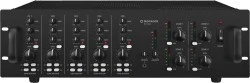 4-strefowy wzmacniacz matrycowy, mono, do profesjonalnych zastosowań np. w systemach PA i multi-room. · Moc 120WRMS na strefę · Praca w trybie 100V oraz 4/8Ω (niezależny wybór dla każdej strefy) · Idealne wykorzystanie mocy i pewne zabezpieczenie obwodów głośnikowych dzięki wbudowanemu limiterowi · 3 wejścia mikr./linia, gniazda Combo · 2 wejścia liniowe stereo, gniazda RCA · Każdy kanał wejściowy z regulacją wzmocnienia, 2-punktowym korektorem barwy, przyciskiem wyciszenia kanału i przełącznikami strefowymi · Wejścia mikrofonowe z włączanym zasilaniem phantom 46V dla mikrofonów elektretowych · Funkcja priorytetu dla kanału 1, włączana · Niezależne wejście przywoławcze, możliwość skierowania do wszystkich stref · 4 strefy, sterowane indywidualnie · Wyjścia strefowe i wyjścia monitora do podłączania kolejnych wzmacniaczy lub rejestratorów · Złącze dla monitora odsłuchowego · Regulatory i wskaźniki poziomu · Regulowane wyjście słuchawkowe · Chłodzenie wentylatorem · Zasilanie sieciowe Moc szczytowa (peak) 4 x 170 W Moc znamionowa RMS 4 x 120 W Moc znamionowa RMS przy 4Ω 4 x 120 W Moc znamionowa RMS przy 8Ω 4 x 120 W Moc znamionowa RMS przy 100V 4 x 120 W Kanały wejściowe 5 Strefy 4 Wejścia 5mV/4kΩ, 100mV/10kΩ (mic/line) 100mV/30kΩ (line) 40mV/5kΩ (tel. paging) Pasmo przenoszenia 50-17 000 Hz Wbudowany limiter tak Korektor niskie ±10dB/100Hz Korektor wysokie ±10dB/10kHz Stosunek S/N > 65 dB, mic > 75dB, line THD