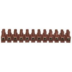 VDE. Łączówki poliamidowe - wysoka temperatura z osłoną przewodu. RS pólnie sztywne bloki terminal Fiber/włókna szklanego o wysokiej temperaturze (160°C) z osłoną Protector z drutu, niklowane mosiężne wkładki i ocynkowane stalowe śruby, które są osadzone i podnoszone w celu łatwego okablowania. Obudowa wykonana z częściowo sztywnego poliamidu (PA) i włókna szklanego Materiał trudnopalny Wysoka temperatura: 160°C. Niklowane mosiężne wkładki Ocynkowane stalowe śruby mocujące, osadzone i uniesione, ułatwiające instalację Kolor: Ciemnobrązowy Standard VDE zatwierdzony