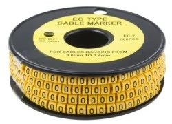 Znaczniki kablowe ślizgowe RS EC-2. Te elementy ślizgowe na żółtym znaczniku na przewodzie PVC są wykonane z najcieńszego miękkiego, Durable PCW, odpornego na erozję oleju, smaru i innych materiałów. Znaczniki kablowe typu EC-2 mają wysokiej jakości elastyczne wnętrze, dzięki czemu można je podłączyć w zakresie od 3,7 do 7,4 mm. Te slajdy na znacznikach kabla PVC mają pogrubioną czarną barwę na żółtej części ciała. Wykonane z najdrobniejszego PVC Odporne na działanie oleju i smaru Temperatura maksymalna 85°C. Dostarczane w postaci rolki
