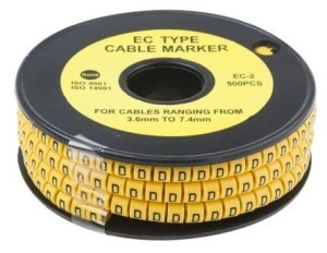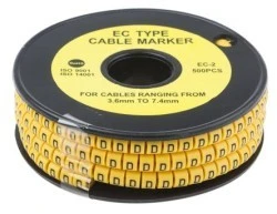 Znaczniki kablowe ślizgowe RS EC-2. Te elementy ślizgowe na żółtym znaczniku na przewodzie PVC są wykonane z najcieńszego miękkiego, Durable PCW, odpornego na erozję oleju, smaru i innych materiałów. Znaczniki kablowe typu EC-2 mają wysokiej jakości elastyczne wnętrze, dzięki czemu można je podłączyć w zakresie od 3,7 do 7,4 mm. Te slajdy na znacznikach kabla PVC mają pogrubioną czarną barwę na żółtej części ciała. Wykonane z najdrobniejszego PVC Odporne na działanie oleju i smaru Temperatura maksymalna 85°C. Dostarczane w postaci rolki