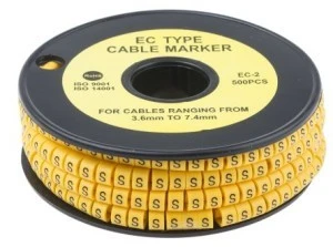 Znaczniki kablowe ślizgowe RS EC-2. Te elementy ślizgowe na żółtym znaczniku na przewodzie PVC są wykonane z najcieńszego miękkiego, Durable PCW, odpornego na erozję oleju, smaru i innych materiałów. Znaczniki kablowe typu EC-2 mają wysokiej jakości elastyczne wnętrze, dzięki czemu można je podłączyć w zakresie od 3,7 do 7,4 mm. Te slajdy na znacznikach kabla PVC mają pogrubioną czarną barwę na żółtej części ciała. Wykonane z najdrobniejszego PVC Odporne na działanie oleju i smaru Temperatura maksymalna 85°C. Dostarczane w postaci rolki