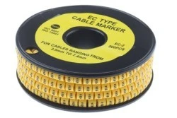 Znaczniki kablowe ślizgowe RS EC-2. Te elementy ślizgowe na żółtym znaczniku na przewodzie PVC są wykonane z najcieńszego miękkiego, Durable PCW, odpornego na erozję oleju, smaru i innych materiałów. Znaczniki kablowe typu EC-2 mają wysokiej jakości elastyczne wnętrze, dzięki czemu można je podłączyć w zakresie od 3,7 do 7,4 mm. Te slajdy na znacznikach kabla PVC mają pogrubioną czarną barwę na żółtej części ciała. Wykonane z najdrobniejszego PVC Odporne na działanie oleju i smaru Temperatura maksymalna 85°C. Dostarczane w postaci rolki