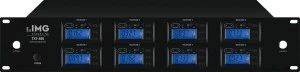 8-krotny odbiornik wieloczęstotliwościowy, w technologii UHF PLL. · Możliwość wyboru 8 x 1000 kanałów UHF (672.000-696.975MHz), podzielonych na 10 grup po 100 · Funkcja ACT do przesyłania wybranej częstotliwości w podczerwieni do nadajnika TXS-606LT/2, TXS-606HSE/2 lub mikrofonów TXS-606HT/2 i TXS-606DT/2 · Automatyczne wyszukiwanie częstotliwości · System "true diversity" z wymiennymi antenami (złącza BNC) · Próg wyciszenia szumów (squelch) i regulacja głośności dla każdego kanału · Wyświetlacz LCD dla każdej sekcji: grupa/kanał, antena A/B, poziom mocy sygnału RF, poziom sygnału audio AF · Dodatkowy wskaźnik poziomu audio · Wyjście XLR sym. dla każdej sekcji · Wyjście 6.3mm dla sygnału zmiksowanego · Solidna metalowa obudowa · W komplecie zasilacz · Gniazda antenowe z 8V zasilaniem dla wzmacniaczy TXS-875B · Montaż w racku 482mm (19"), 2U, za pomocą dołączonych uchwytów Wymaga licencji w niektórych krajach UE! Typ urządzenia odbiornik wieloczęstotliwościowy Częstotliwość nośna 672.000-696.975 MHz Pasmo przenoszenia 30-18 000 Hz Kanały wejściowe 8 THD < 0.5 % Dynamika 100 dB Stosunek S/N RF 105 dB Dopuszcz. temp. otoczenia 0-40 °C Odbiornik, wyjścia audio 350mV/600Ω (6.3mm) 25mV/600Ω (XLR, sym.) Odbiornik, zasilanie z doł. zasilacza Odbiornik, szerokość 482 mm Odbiornik, wysokość 90 mm Odbiornik, głębokość 310 mm Odbiornik, waga 4.4 kg Odbiornik, złącza 8 x XLR, sym., 1 x 6.3mm, niesym. Waga netto 5.38 kg