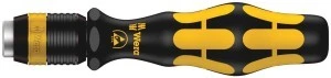 Wysokiej jakości rękojeść antystatyczna do pracy bez ryzyka uszkodzenia ładunkami elektrostatycznymi: oporność powierzchniowa tworzywa użytego w produktach firmy Wera z serii ESD wynosi 106 - 109 ?. Pozwala to pewnie chronić urządzenia przed ładunkami elektrostatycznymi i związanymi z nimi uszkodzeniami. Uchwyt szybkowymienny Rapidaptor umożliwia szybką wymianę grotów i końcówek bez dodatkowych narzędzi. Rękojeść Kraftform zapewnia przyjemną i ergonomiczną pracę chroniąc dłoń przed powstawaniem pęcherzy i odcisków. Twarde strefy chwytu umożliwiają szybkie pokręcanie, miękkie strefy zapewniają przenoszenie wysokich momentów obrotowych. Do grotów sześciokątnych 1/4" wg DIN ISO 1173-C 6,3 oraz końcówek E 6,3 (ISO 1173).