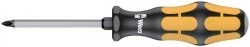 Wkrętak Wera do dokręcania, pobijania, kucia i odkręcania mocno osadzonych śrub. Z wielokomponentową rękojeścią Kraftform do szybkiej i bezpiecznej pracy. Kraftform Plus: twarde strefy chwytu umożliwiają szybką pracę, miękkie strefy zapewniają przenoszenie wysokich momentów obrotowych. Przelotowy trzpień sześciokątny z wysokiej jakości materiału używanego do produkcji bitów pozwala na bezstratne przenoszenie siły nawet podczas pobijania. Ulepszony cieplnie materiał o dużej ciągliwości zapobiega odpryskom lub pękaniu trzpienia. Nakładka do pobijania zwiększa trwałość i ogranicza ryzyko rozszczepienia rękojeści. Zabierak sześciokątny do wspomagania kluczem płaskim lub oczkowym umożliwia przenoszenie większych momentów obrotowych. Końcówka Black Point oraz specjalny proces hartowania zapewniają długi okres użytkowania, zwiększają odporność na korozję i gwarantują precyzyjne dopasowanie narzędzia do gniazda śruby. 6-kątny kołnierz zapobiegający uciążliwemu staczaniu się narzędzia z miejsca pracy.