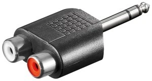 Gniazdo jack 6,35 mm (3-pinowe, stereo) > 2 gniazd Cinch (lewy/prawy kanał audio)