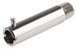 Łączniki bagnetowe RS PRO z termoparą. Z RS PRO gwintowany adapter bagnetowy do użytku z termoparami lub czujnikami temperatury typu bagnetowego. Ten adapter termopary składa się z męskiego gwintu do mocowania procesu i kołka bagnetowego do połączenia z współpracującą nasadką. Termopara jest po prostu wkładana i blokowana w adapterze, który utrzymuje końcówkę czujnikową pewnie w miejscu procesu lub na powierzchni, którą mierzy. Charakterystyka i zalety. Pokryte warstwą mosiądzu niklowanego Pojedyncze złącze bagnetowe korpus o średnicy 11 mm dopasowany do najczęściej stosowanych nasadek bagnetowych o średnicy wewnętrznej 11,5 mm średnica wewnętrzna 7,8 mm