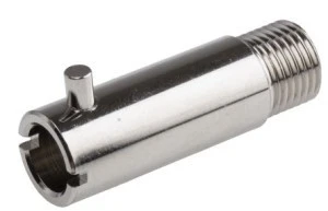 Łączniki bagnetowe RS PRO z termoparą. Z RS PRO gwintowany adapter bagnetowy do użytku z termoparami lub czujnikami temperatury typu bagnetowego. Ten adapter termopary składa się z męskiego gwintu do mocowania procesu i kołka bagnetowego do połączenia z współpracującą nasadką. Termopara jest po prostu wkładana i blokowana w adapterze, który utrzymuje końcówkę czujnikową pewnie w miejscu procesu lub na powierzchni, którą mierzy. Charakterystyka i zalety. Pokryte warstwą mosiądzu niklowanego Pojedyncze złącze bagnetowe korpus o średnicy 11 mm dopasowany do najczęściej stosowanych nasadek bagnetowych o średnicy wewnętrznej 11,5 mm średnica wewnętrzna 7,8 mm