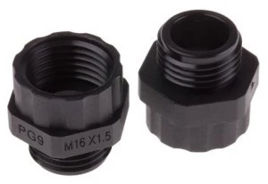 Adaptery kablowe RS. UL 94V-2 Materiał nylonowy 66 Kolor czarny Umożliwia przełączanie z zewnętrznego wątku PG na wewnętrzny gwint metryczny