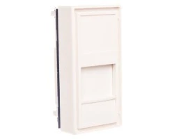 Adapter w standardzie mosaic 45x45 o wymiarze 22,5x45 mm (jeden moduł) do gniazd telefonicznych i teleinformatycznych typu keystone, np. RJ45 lub RJ12. Montaż adaptera przez zatrzaśnięcie w uchwycie szybkiego montażu UCHKP, w obudowie natynkowej OBUK, ramce maskującej RAMK. Przeznaczony do montażu jednego gniazda.