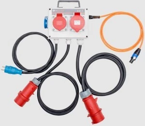 Adapter do testowania prądów upływu Sonel. Służy do sprawdzania prądu upływu obwodu pierwotnego spawarki w sytuacji, gdy jest ona zasilana z sieci jednofazowej bądź trójfazowej (16 A lub 32 A). Ponadto służy do sprawdzania prądu upływu PE urządzeń zasilanych z sieci trójfazowej o maksymalnym prądzie 16 A lub 32 A.