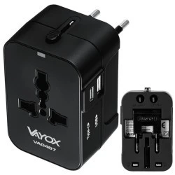 Adapter podróżny UK/US/EU/AU z ładowarką USB‑A, USB‑C 100V‑240Vac 6A 1500W czarny VA0407 Vayox