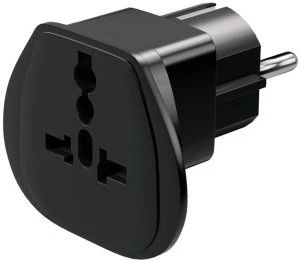 Wtyczka z uziemieniem (typ F, CEE 7/7) > gniazdo brytyjskie, gniazdo szwajcarskie (typ J, SEV 1011), gniazdo włoskie (typ L, CEI 23-16-VII), gniazdo amerykańskie/japońskie (typ B, NEMA 5-15, 3-pinowe)