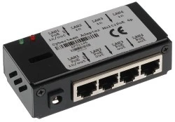 Adapter POE-UNI/4 to urządzenie, dzięki któremu w prosty sposób można zasilić do 4 urządzeń wykorzystując skrętkę komputerową.