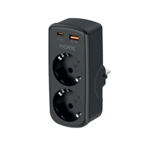 Rozgałęziacz jest wyposażony w 2 gniazda AC oraz 2 porty USB ( USB-A i USB-C), co umożliwia jednoczesne ładowanie wielu urządzeń. Dzięki temu, bez trudu podłączysz laptopa, telefon i inne akcesoria, nie martwiąc się o brak dostępnych gniazdek.