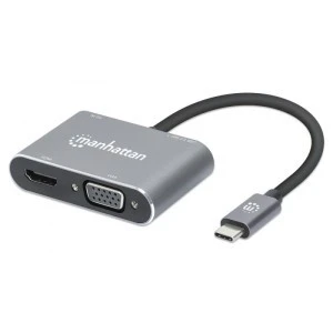 Przejściówka USB-C Manhattan 130691 – Hub Adapter USB-C 3.2 Gen1 na HDMI 4K*30Hz, VGA 1080p, USB-A 5Gbps, z Funkcją Zasilania USB-C Power Delivery 87W