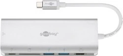 Adapter wieloportowy USB-C™ HDMI 4k 30 Hz, USB, CR, RJ45, PD, alum., srebrny