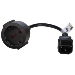 Przejściówka pomiędzy występującym w zasilaczach UPS złączem C14 a standardowym gniazdem prądowym typu schuko. Pozwala na podłączenie urządzeń wyposażonych w typowy wtyk zasilania, co jest szczególnie przydatne w przypadku zasilaczy awaryjnych wyposażonych wyłącznie w gniazda C14.