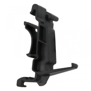 Adapter/uchwyt do szyny DIN, do rozgałęźników/odgałęźników z serii F. Adapter/uchwyt do montażu rozgałęźników i odgałęźników z serii F na szynie DIN. Wykonany z tworzywa sztucznego w kolorze czarnym. Jego mocowanie umożliwia styk urządzenia z szyną DIN, dzięki czemu nie ma konieczności podłączania do uziemienia za pomocą specjalnego przewodu.