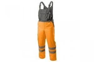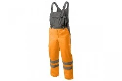 Męskie, ocieplane ogrodniczki ostrzegawcze wykonane z najwyższej jakości materiałów. Posiadają dwie taśmy odblaskowe dookoła kolan. Zapewniają maksymalny komfort oraz ochronę przed zimnem i wiatrem. Chronią również przed deszczem (wodoodporność na poziomie 2000 mm H2O). Zwiększają bezpieczeństwo podczas przebywania w warunkach ograniczonej widoczności np. w trakcie przemieszczania w nocy oraz podczas złych warunków pogodowych np. w czasie deszczu lub mgły.