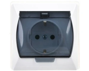AKCENT Gniazdo bryzgoszczelne z/u IP44 klapka przezroczysta białe GPH-1AZ/00/d