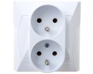 LOGI Gniazdo podwójne 2x2P+Z kompletne z przesłoną styków śrubowe 16A 250V Biały 25093