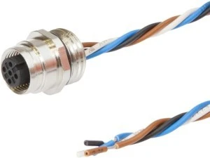 Akcesoria, Gniazdo do zabudowy, kompletne, 250V, ‑25‑90C, M12 4‑PIN, IP68, Złącze śrubowe M16, Długość żył 0,5m AV98A438