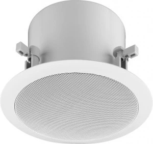 Aktywny 2-drożny głośnik sufitowy z modułem Dante®. · Wbudowany wzmacniacz 30W · 20cm (8") głośnik basowy z membraną z włókna szklanego oraz 2.5cm (1") kopułkowy głośnik wysokotonowy · Dekodowanie: 16/24/32 bity · Próbkowanie: 44.1/48/88.2/96 kHz · Zasilanie PoE (Power over Ethernet) · Pobór mocy podczas uruchamiania do 75W · Ramka z tworzywa sztucznego z metalową maskownicą · Do sufitów o grubości 4cm · Otwór montażowy: Ø 240mm · Głębokość montażowa: 225mm łącznie z przestrzenią na złącze sieciowe Wymagania systemowe Dante®: Windows 7/8/10 lub MacOS 10.9.5/10.10.5/10.11 Marka Dante® oraz oprogramowanie Dante® są licencjonowanymi produktami należącymi do Audinate Pty Ltd. Aktywny/pasywny aktywny Technika Dante® Moc muzyczna MAX 40 W Moc znamionowa RMS 30 W Pasmo przenoszenia 100-20 000 Hz Sygnał wejściowy DANTE® System 2-drożny Głośnik niskotonowy 1 x 20 cm Głośnik wysokotonowy 1 x 2.5 cm Liczba przetworników 2 Rozmiar głośnika 20cm (8") Skuteczność 93 dB/W/m Max SPL 105 dB Kąt promieniowania 100° Kąt promieniowania w poziomie 100° Kąt promieniowania w pionie 100° Materiał obudowy plastic frame, protective metal grille Kolor biały Sposób montażu sufit podwieszany Dopuszcz. temp. otoczenia 0-40 °C Zasilanie PoE przez RJ45 Wymiary Ø 272 mm x 187 mm Szerokość Ø 272 mm Wysokość Ø 272 mm Głębokość 187 mm Waga 2.7 kg Wejścia RJ45 Wymiary opakowania (S x W x D) 0.31 x 0.22 x 0.31 m Waga brutto 3.64 kg Waga netto 2.73 kg
