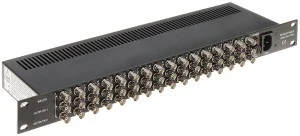 Rozgałęźnik wideo RV-16/32-RACK umożliwia rozdzielenie sygnałów wideo. Urządzenie jest przystosowane do pracy ciągłej, w pomieszczeniach zamkniętych. Urządzenie przystosowane do kamer kolorowych, czarno-białych, PAL. Odpowiednie odległości pomiędzy gniazdami, umożliwiają swobodne dokręcenie palcami dowolnego wtyku BNC.